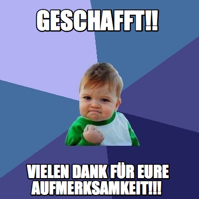 Meme Creator - Funny Geschafft!! Vielen Dank für eure Aufmerksamkeit!!! Meme Generator at MemeCreator.org!