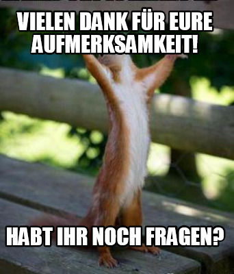 Meme Creator - Funny Vielen Dank für eure aufmerksamkeit! Habt ihr noch fragen? Meme Generator at MemeCreator.org!